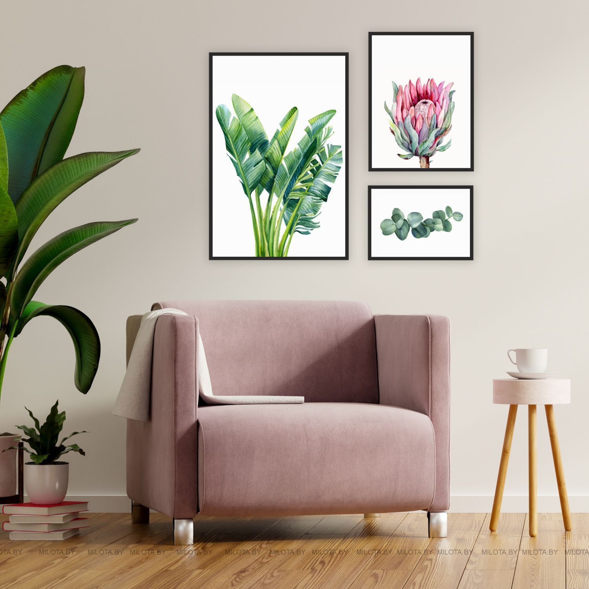 Набор постеров "Банановые листья с протеей"