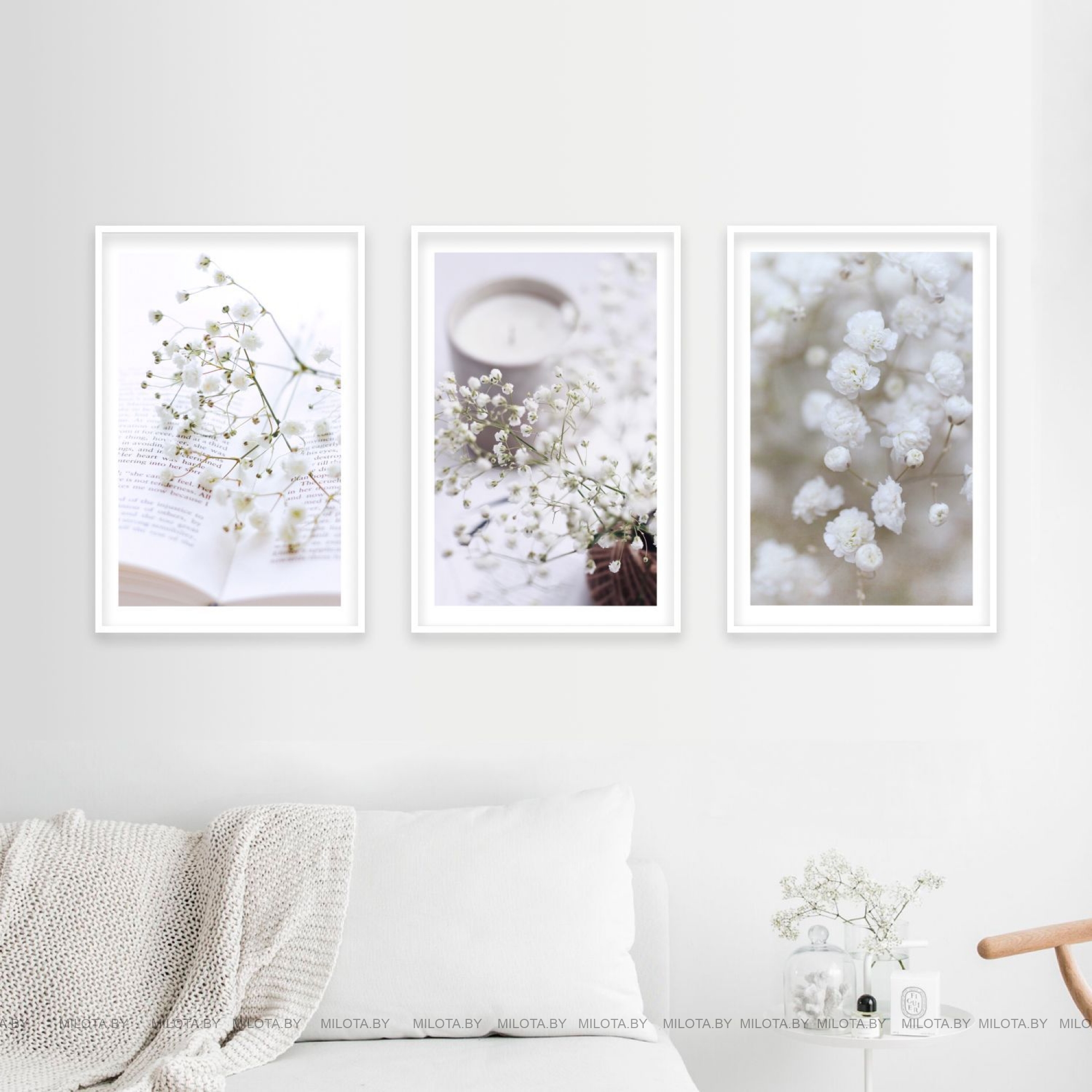 Набор состоит из трех постеров размером 40х60 см (размер вы может менять по своему усмотрению) + рамы с небьющимся стеклом.