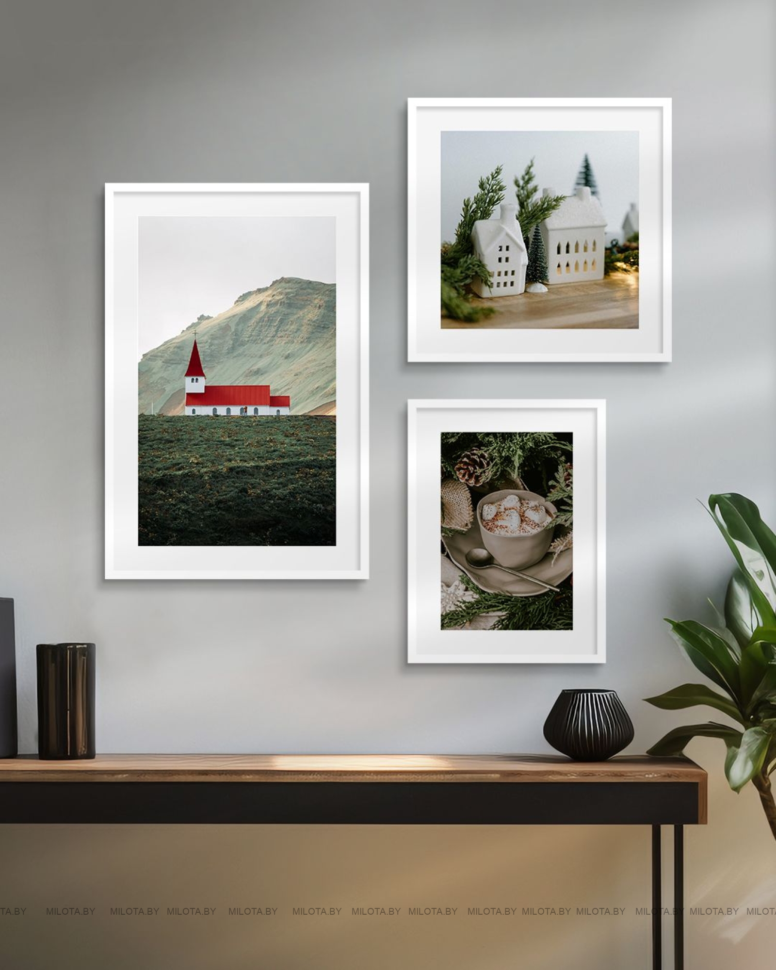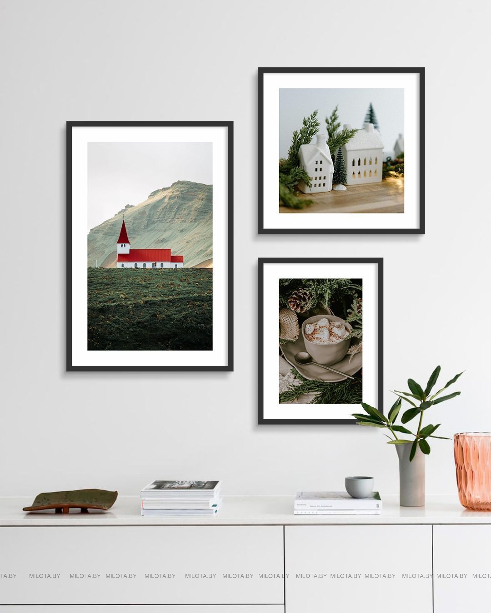 В наборе: 1 постер форматом 40×60 см, 1 постер 40×40 см и 1 постер 30×40 см + рамы со спец. стеклом (ПЭТ).