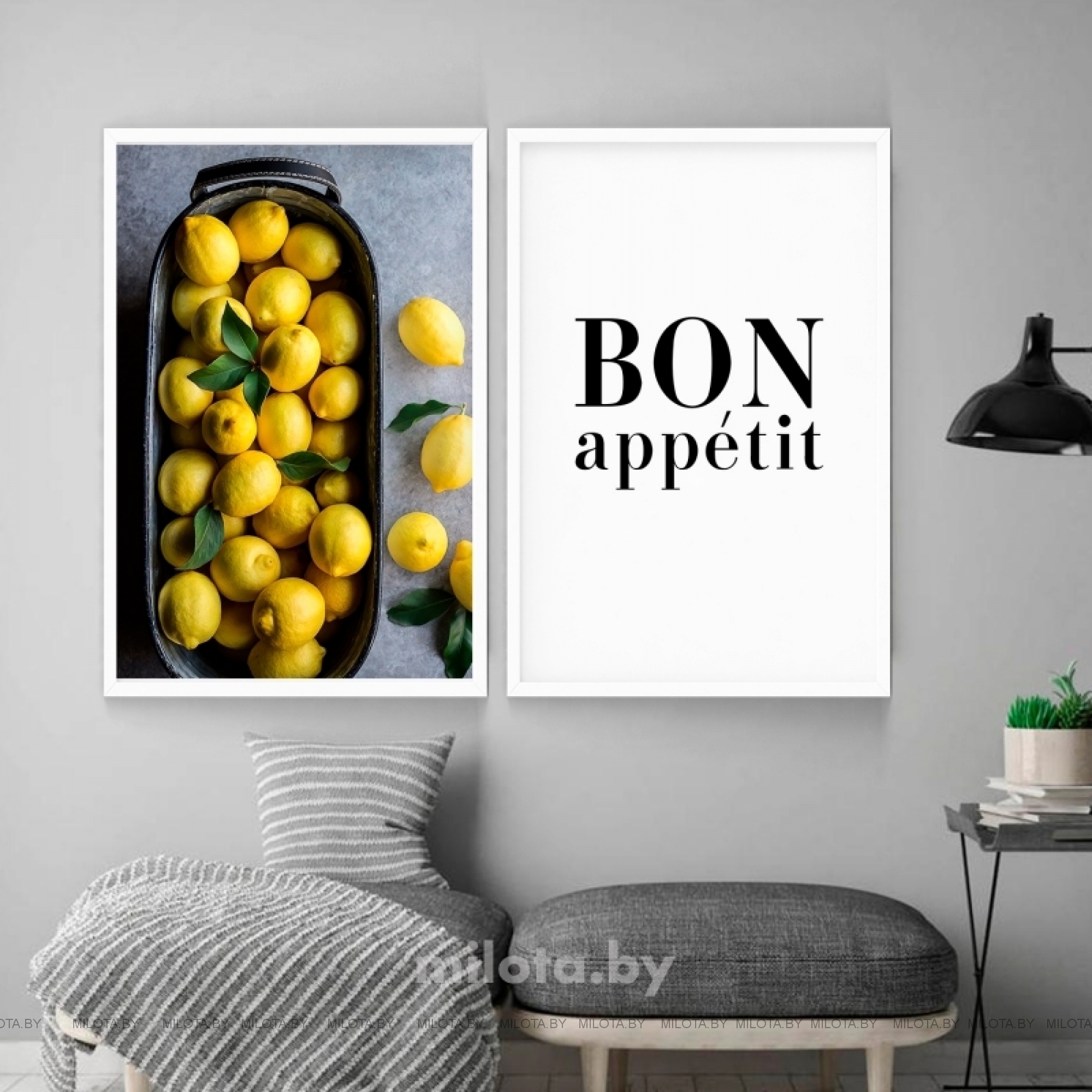 Набор постеров для оформления интерьера "Лимоны". В набор входит: 2 постера форматом А2 в черной деревянной рамке с небьющимся стеклом.