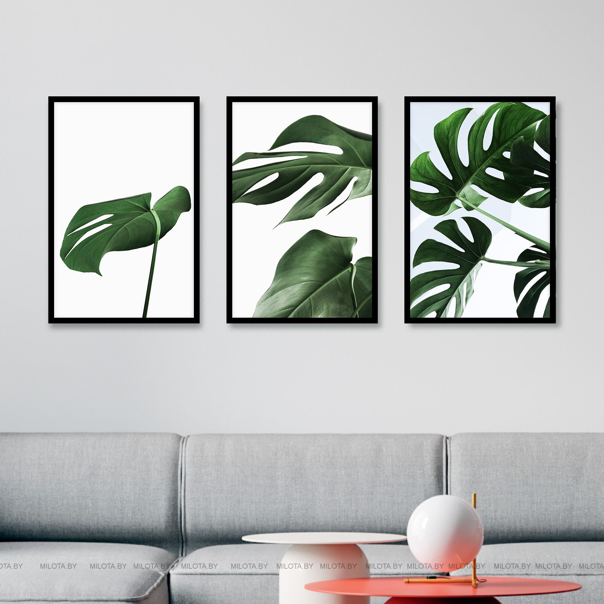 Набор постеров для оформления интерьера "Тропический микс". В набор входит: 3 постера форматом А2 в черных деревянных рамках с небьющимся стеклом.
