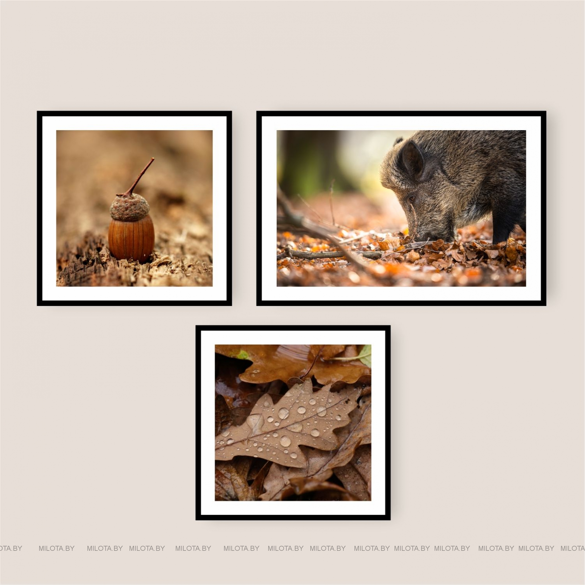 В набор входит: 1 постер размером 60х40 см, 2 постера размером 40х40 см. В комплекте также деревянные рамки и небьющееся стекло. Постеры надежно упаковываются в симпатичные коробки.