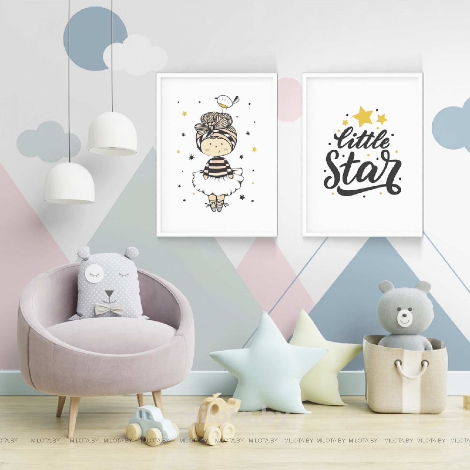 Набор постеров для оформления интерьера "Маленькая принцесса". В набор входит: 2 постера форматом А2 в белых деревянных рамках с небьющимся стеклом.