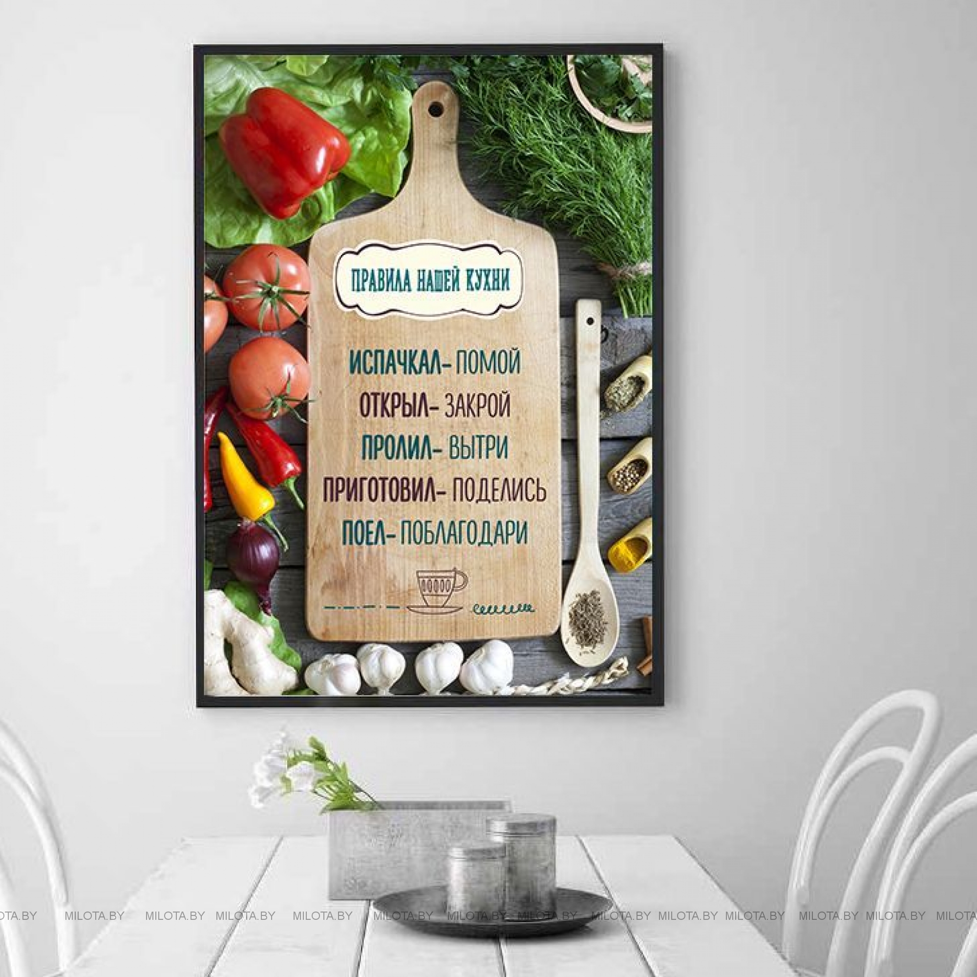 Мотивируйся и действуй – "Правила кухни". Мы собрали лучшие мотивационные постеры, которые реально заставят вас действовать. В магазине вы можете выбрать подходящую рамку к плакату, который отлично впишется в ваш интерьер.
